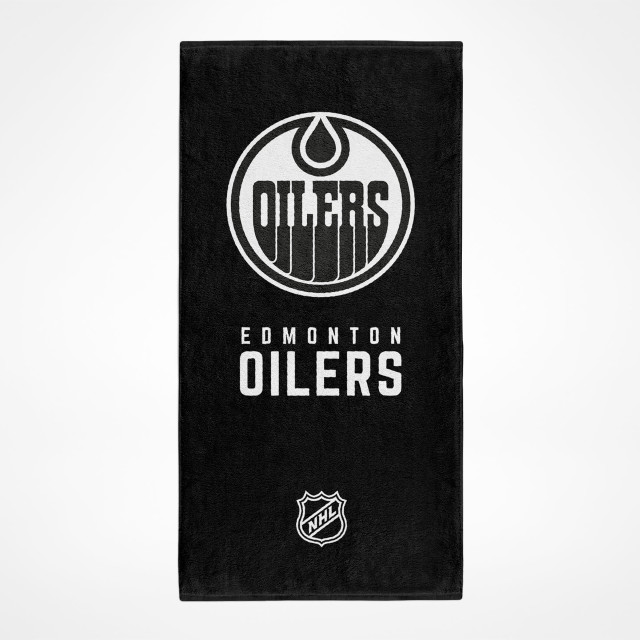 Snygg svart Edmonton Oilers handduk. Mått 70 x 140 cm