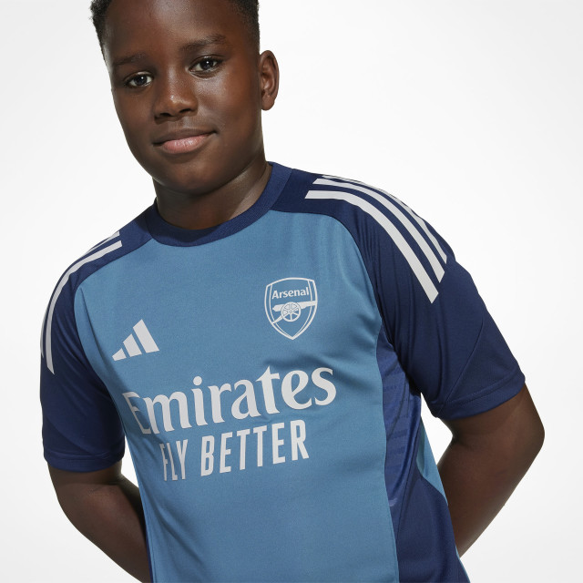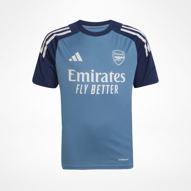 Blå träningströja från Adidas med Arsenal klubbmärke på bröstet. Juniorstorlekar.
