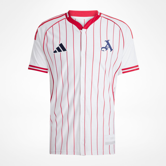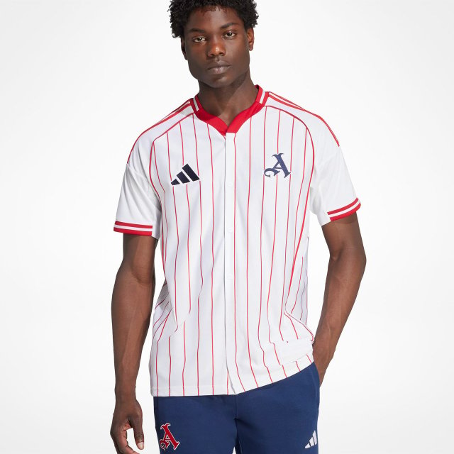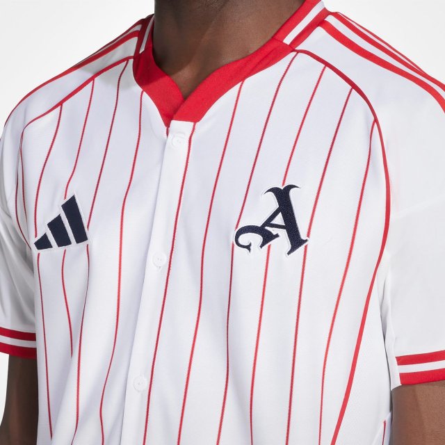This Adidas shirt fuses baseball diamond DNA with football field style. Pinstripes, a button closure and that eye-catching team name on the back bring a stateside-inspired look and feel to a match jersey silhouette.